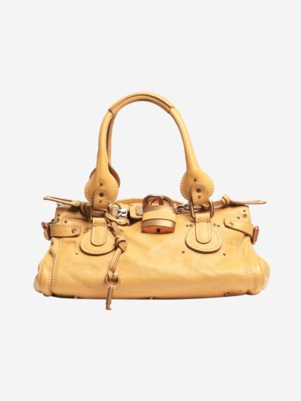 Chloe mustard Paddington leather handbag with gold and silver hardware. This bag has a main zipped compartment with interior zipped