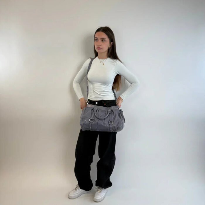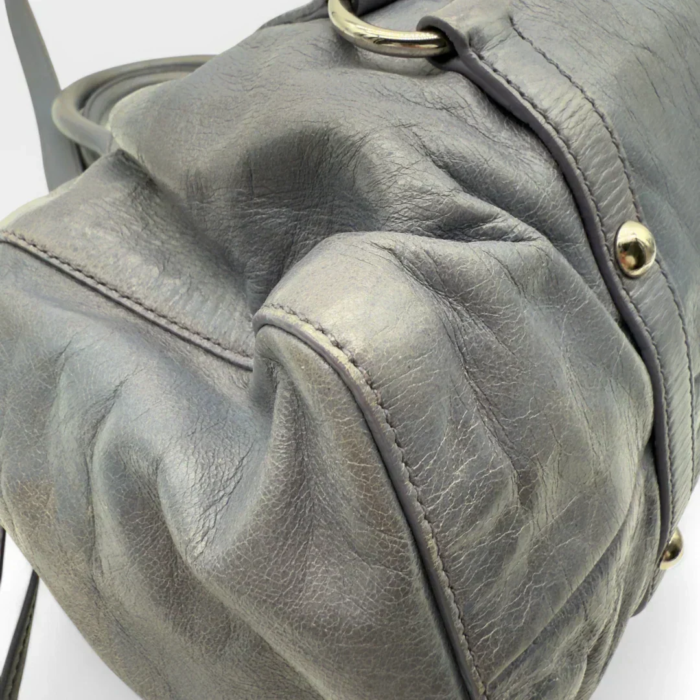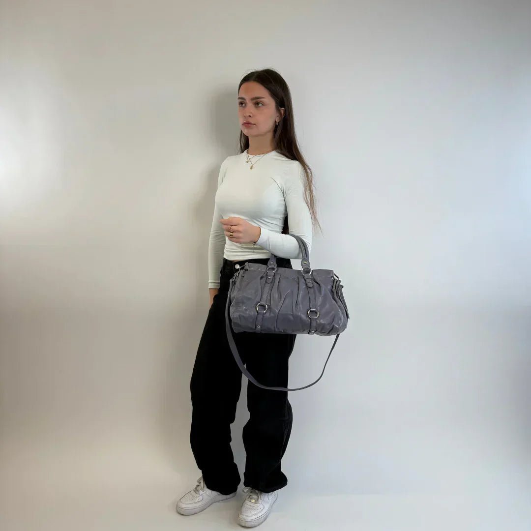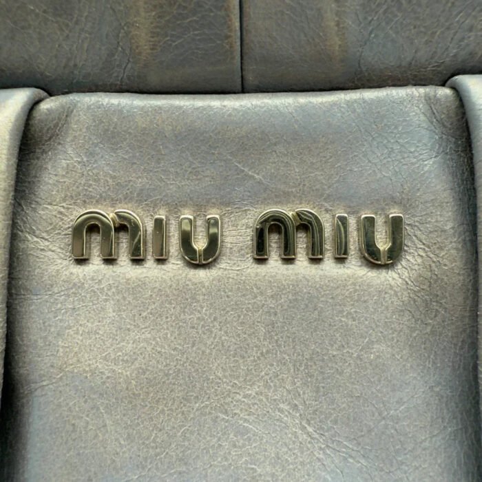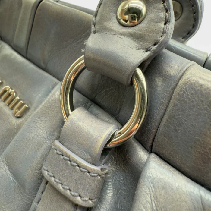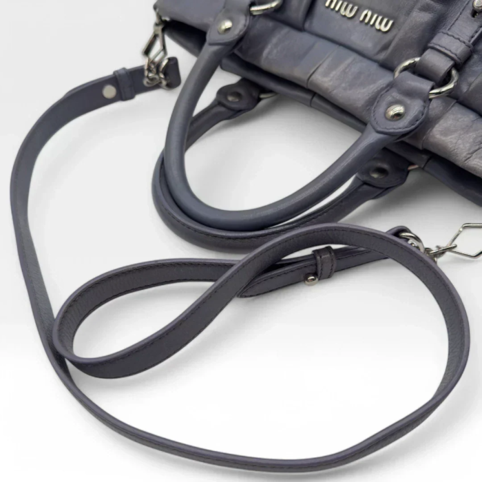 Miu Miu Vitello Lux handbag in grey-lilac with leather shoulder strap – a vintage statement in streetwear style for style-conscious fashionistas.