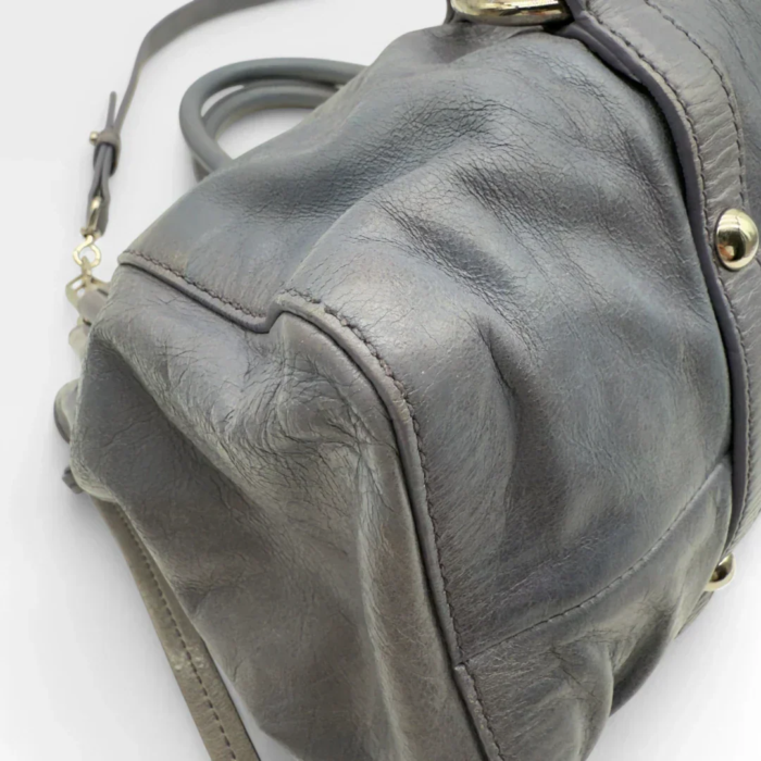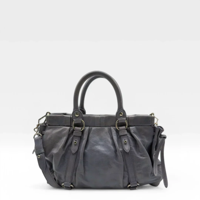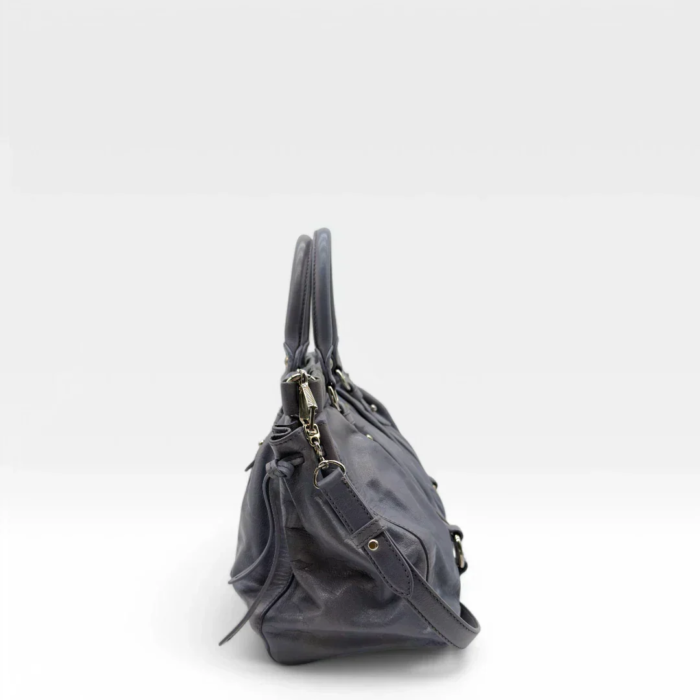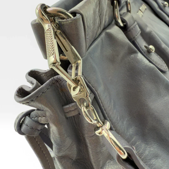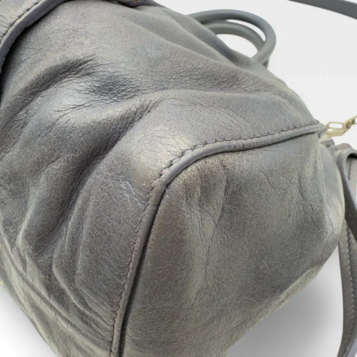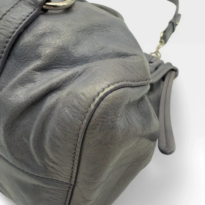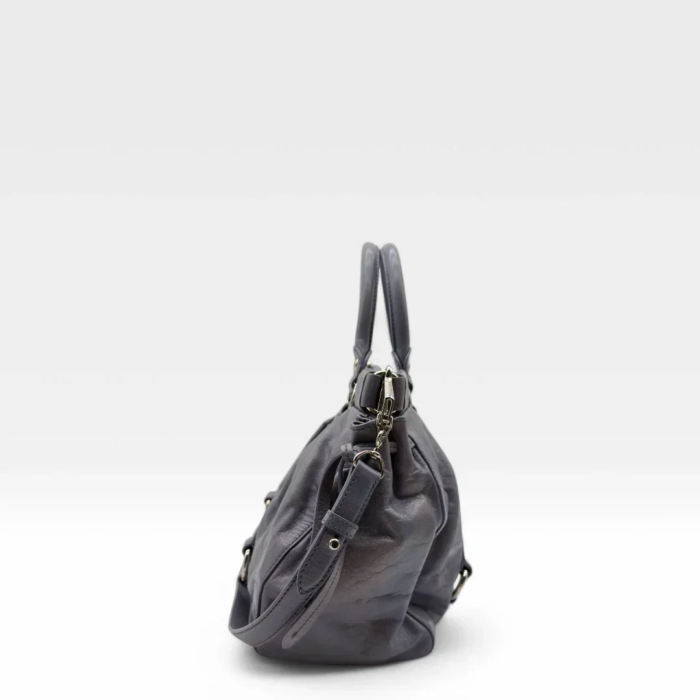 Miu Miu Vitello Lux handbag in grey-lilac with leather shoulder strap – a vintage statement in streetwear style for style-conscious fashionistas.