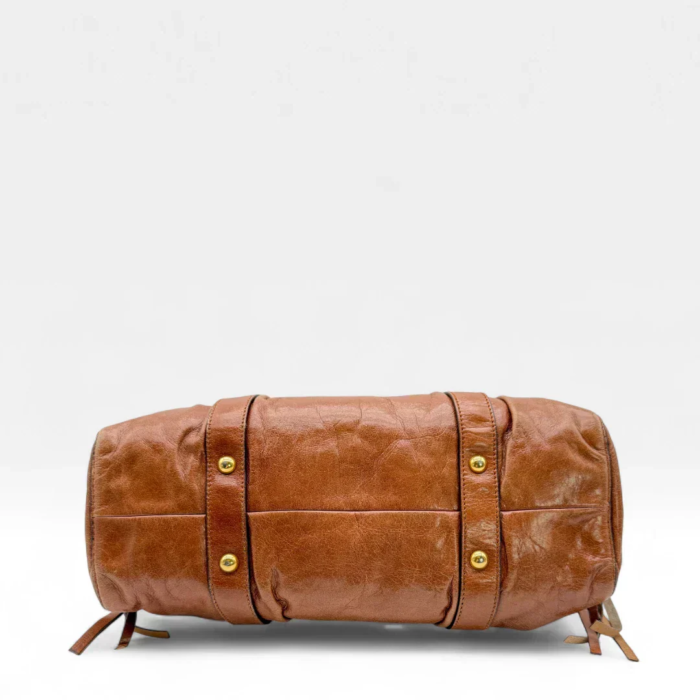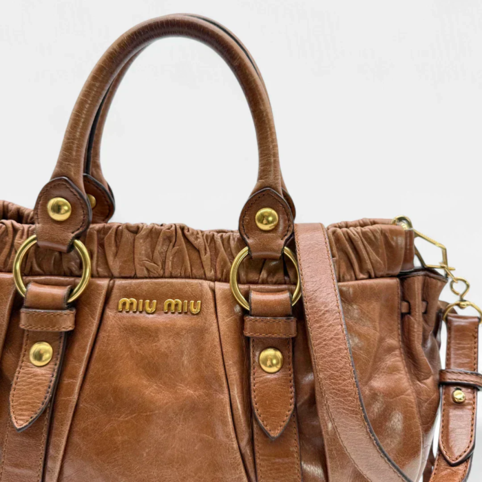Miu Miu Vitello Lux Handtasche aus dunkelbraunem Leder mit Umhängegurt, vintage Style – eleganter Streetwear-Look für jeden Anlass.
