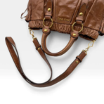 Miu Miu Vitello Lux Handtasche aus dunkelbraunem Leder mit Umhängegurt, vintage Style – eleganter Streetwear-Look für jeden Anlass.