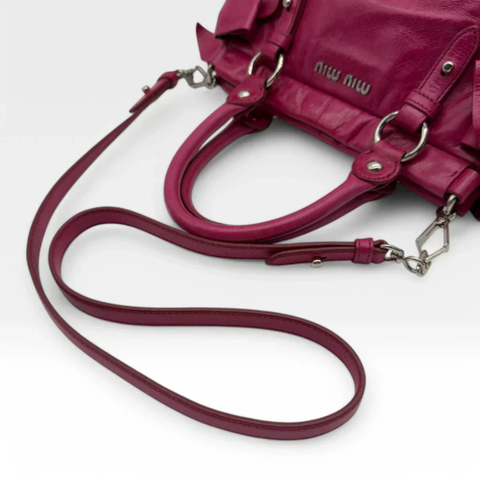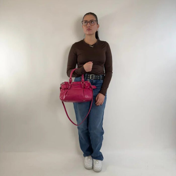 Miu Miu Vitello handbag in pink with leather shoulder strap – a vintage Y2K streetwear piece that stands out in style.