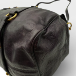 Material: Black Leather  Style: Top Handle Bag  Two leather handles Fastening: Gold press stud Inside: Cotton lining with zip pockets