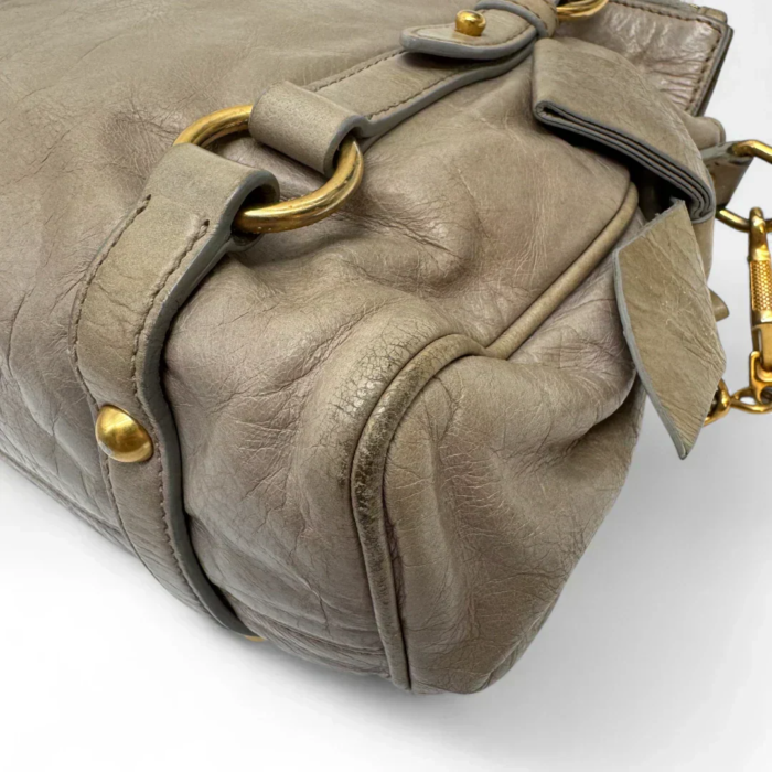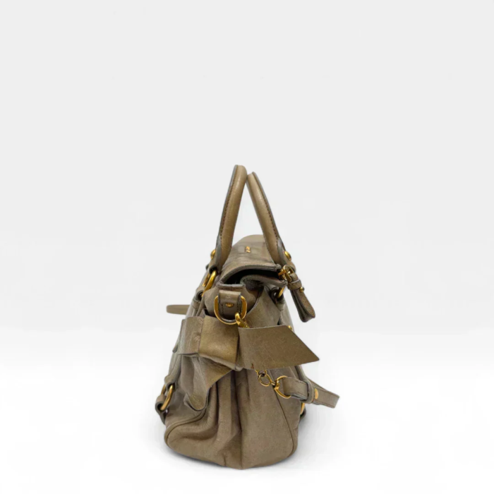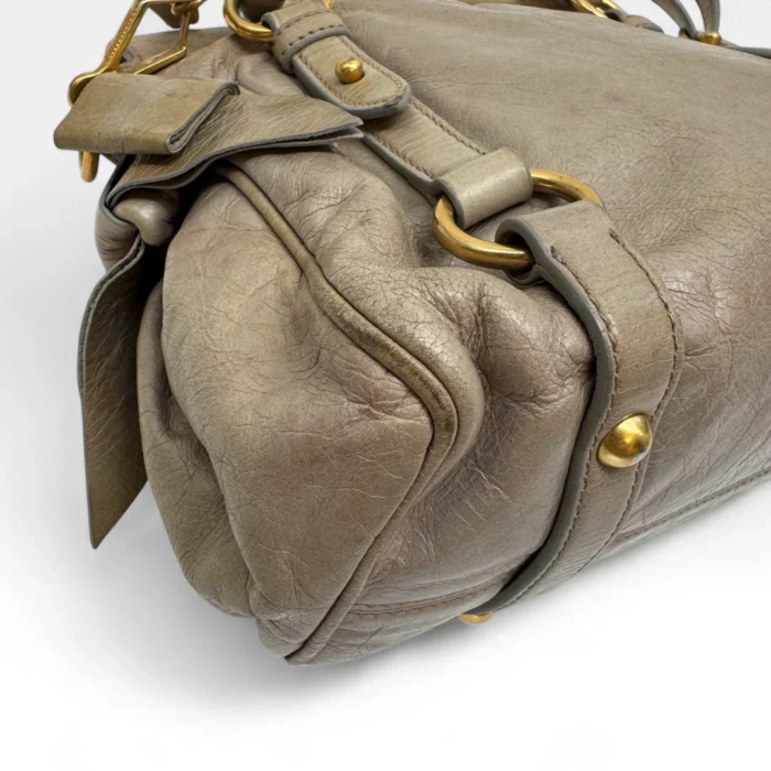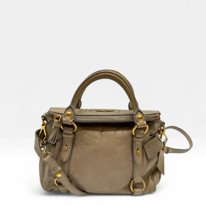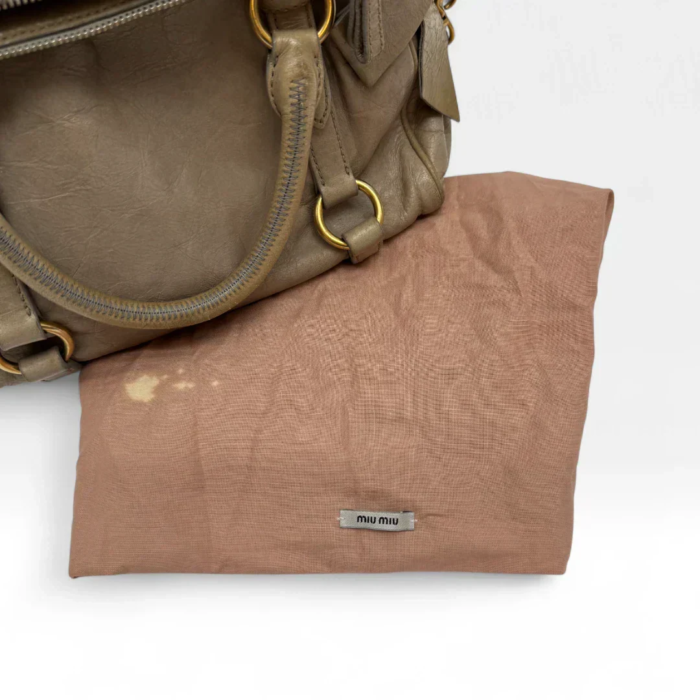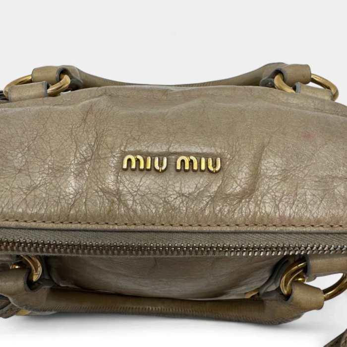 Miu Miu Vitello Satchel handbag in beige leather, small with shoulder strap – a vintage streetwear highlight for every outfit.