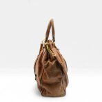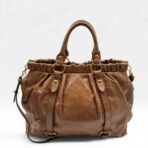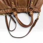 Miu Miu Vitello Lux große Handtasche aus braunem Leder mit Umhängegurt – eleganter Vintage-Style im lässigen Streetwear-Look.
